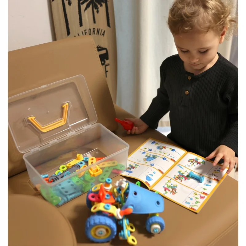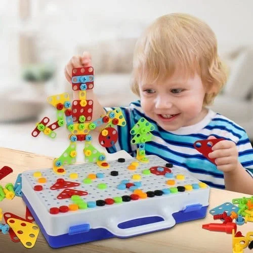 - Technologinį supratimą – mechaniniai elementai, varžtai ar jungimo detalės padeda suvokti, kaip veikia paprastos sistemos.
