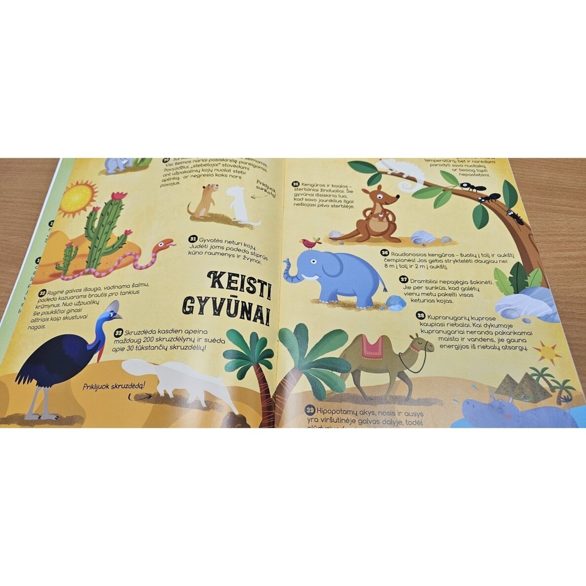 Skaitydami įdomius faktus ir klijuodami spalvingus lipdukus, vaikai mokysis per žaidimą, plės akiratį ir atras gyvūnų karalystės paslaptis. Tai puikus būdas suderinti pramogą ir edukaciją.