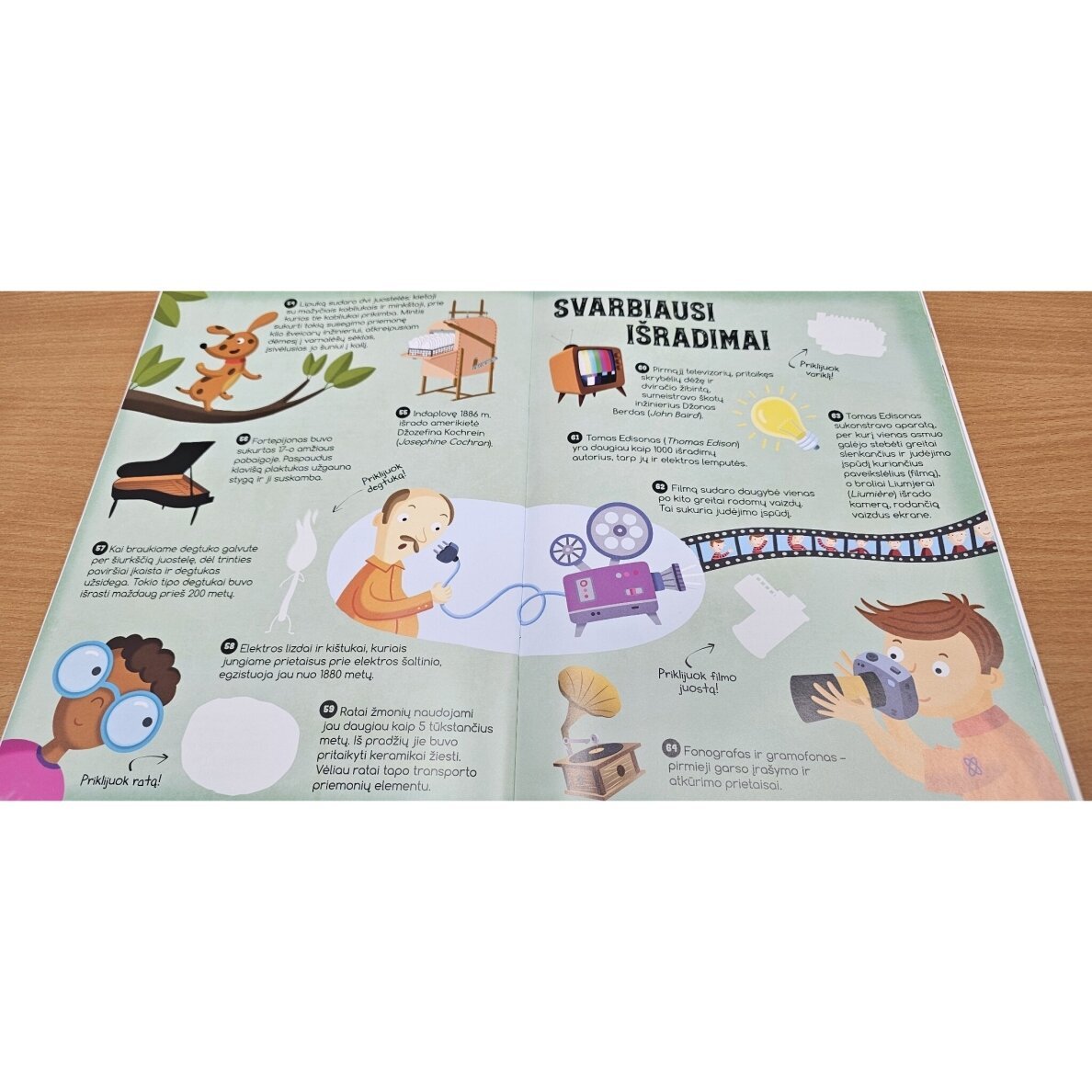 Vaikai ne tik skaitys įdomius faktus apie įvairius atradimus ir išradimus, bet ir aktyviai mokysis – klijuos lipdukus, tyrinės ir pažins pasaulį per žaidimą. Tai puikus būdas sudominti mokslu nuo mažens.