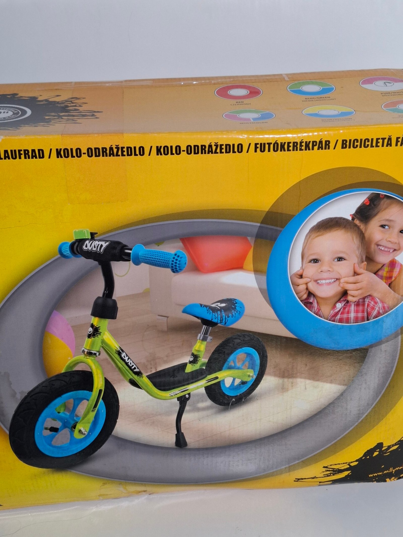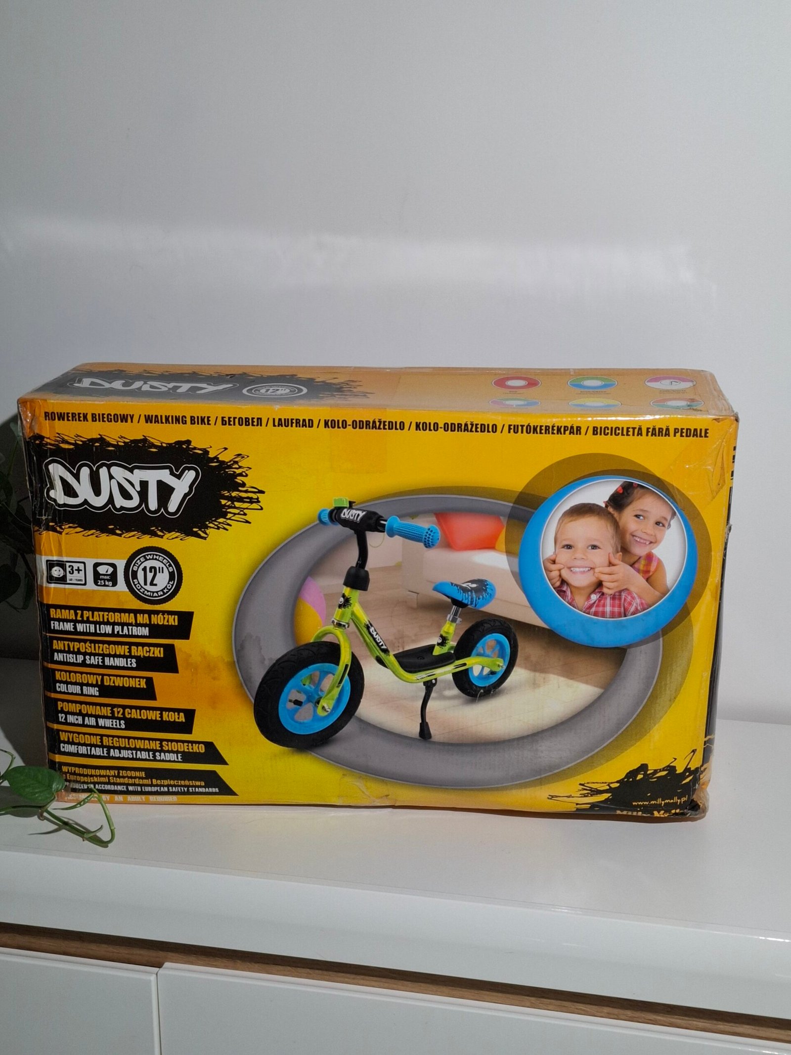 Didžiausias DUSTY privalumas – pripučiamų padangų ratai, kurie suteikia minkštą važiavimą įvairiais paviršiais. Dviratukas turi pakoją, atraminę kojelę, taip pat reguliuojamą sėdynės ir vairo aukštį, todėl lengvai prisitaiko prie augančio vaiko poreikių. Pridedamas skambutis leis vaikui pasijusti kaip tikram dviratininkui!