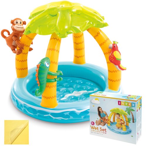 Saugus ir jaukus pirmasis susipažinimas su vandeniu! Baseinas su stogeliu „Tropical Island“ INTEX sukurtas taip, kad vaikai galėtų mėgautis vandens pramogomis apsaugoti nuo tiesioginių saulės spindulių.