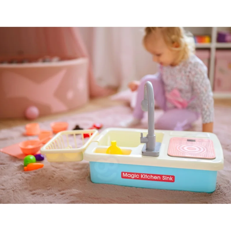 Interaktyvi virtuvės kriauklė „2in1“ – tikroviškas ir edukacinis žaidimas vaikams, leidžiantis pajausti suaugusiųjų virtuvės darbų džiaugsmą! Tikroviška čiaupo funkcija ir pjaustomi produktai užtikrina smagų ir lavinantį žaidimą.