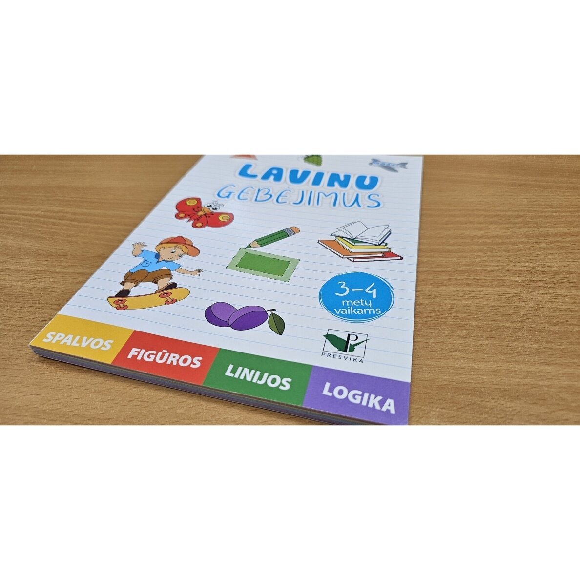 „Lavinu gebėjimus“ – edukacinė knygelė 3–4 metų vaikams, padedanti pažinti spalvas, figūras, linijas ir lavinti logiką. Spalvingos užduotys skatina motoriką, dėmesį ir pasiruošimą tolimesniam mokymuisi.