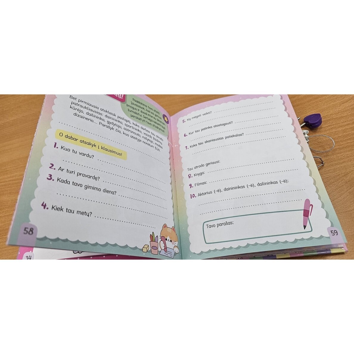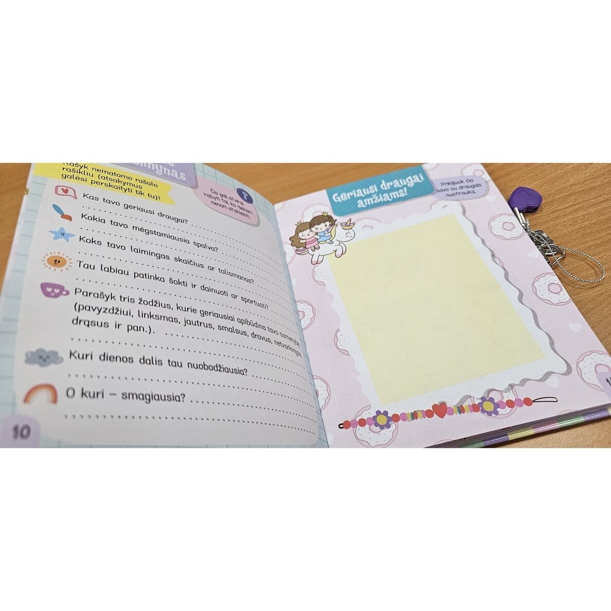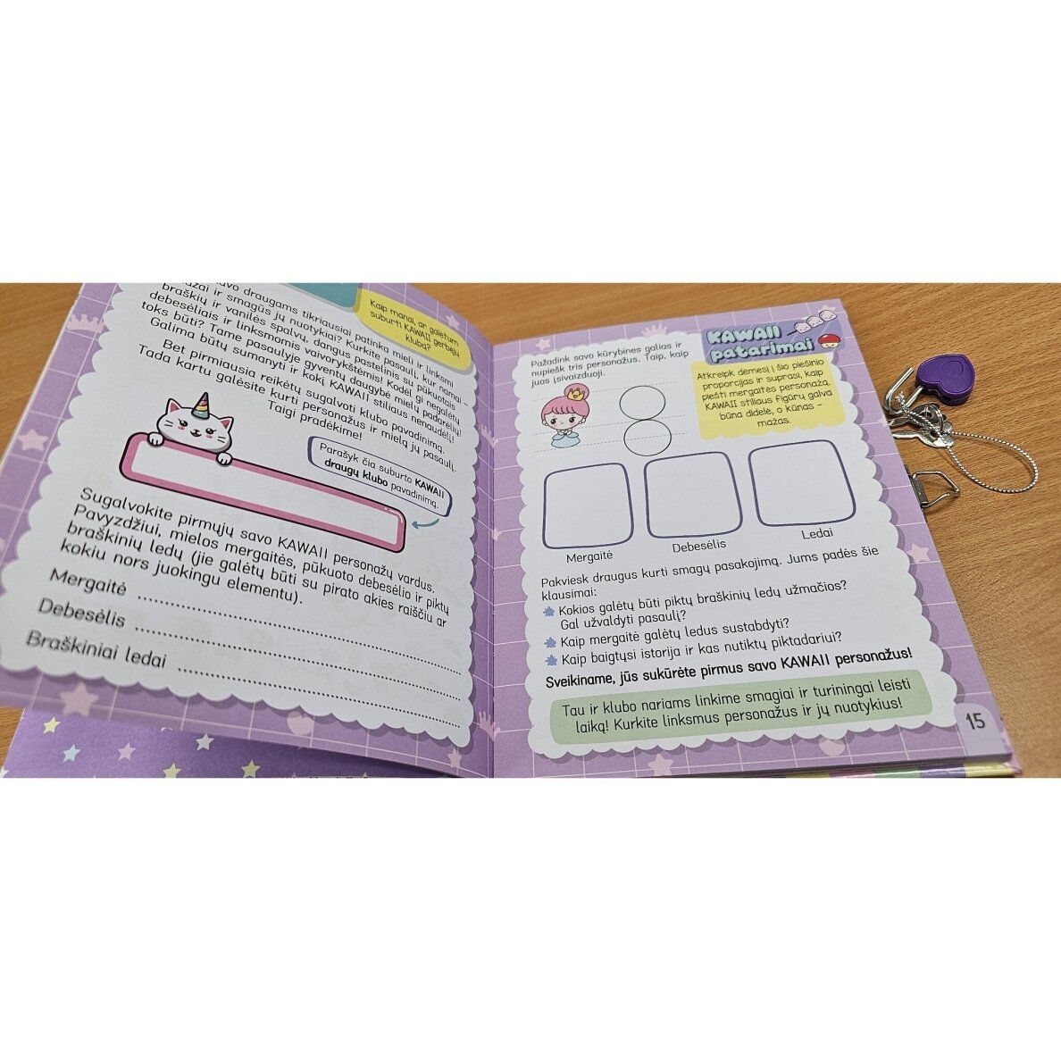 Čia galėsi ne tik rašyti apie savo kasdienybę, bet ir atlikti linksmus testus, spręsti užduotis bei mokytis piešti mielus KAWAII personažus. O svarbiausia – tavo paslaptys bus saugios! Naudodamas specialų nematomo rašalo rašiklį galėsi užrašyti slaptas žinutes, kurias pamatysi tik su ultravioletine šviesa.