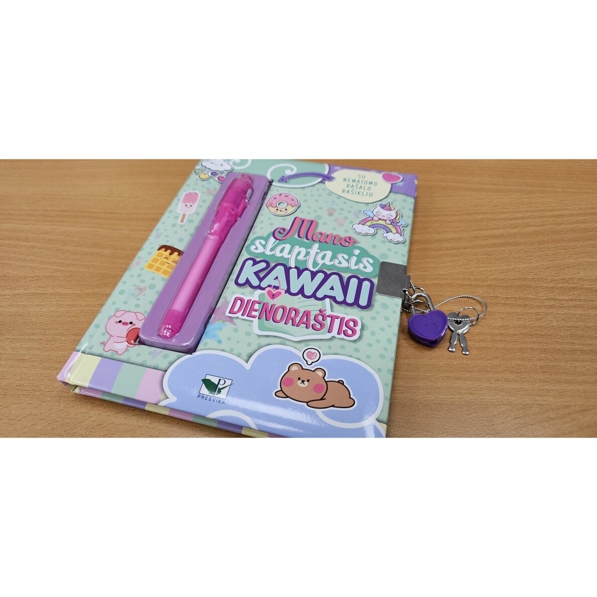 „Mano slaptasis KAWAII dienoraštis“ – kūrybinė knyga su nematomo rašalo rašikliu, skirta vaikų mintims, paslaptims ir smagioms užduotims.