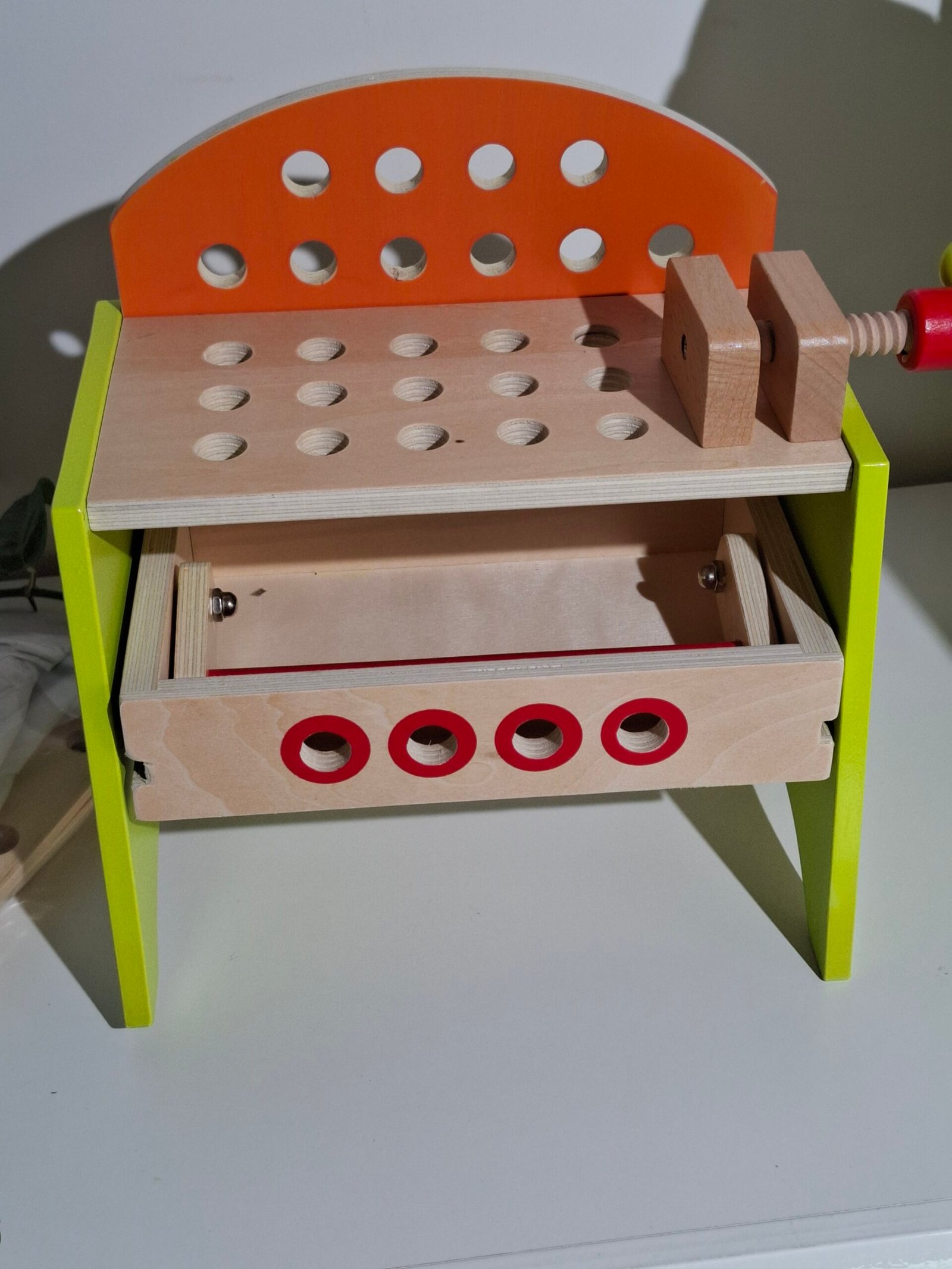 Medinės dirbtuvėlės – tai mini darbastalis ir nešiojama įrankių dėžutė, skirta vaikų kūrybiškumui ir praktiniams įgūdžiams ugdyti. Vaikas galės konstruoti įvairius objektus naudodamas realistiškus, saugius įrankius. Lavina smulkiąją motoriką ir vaizduotę.