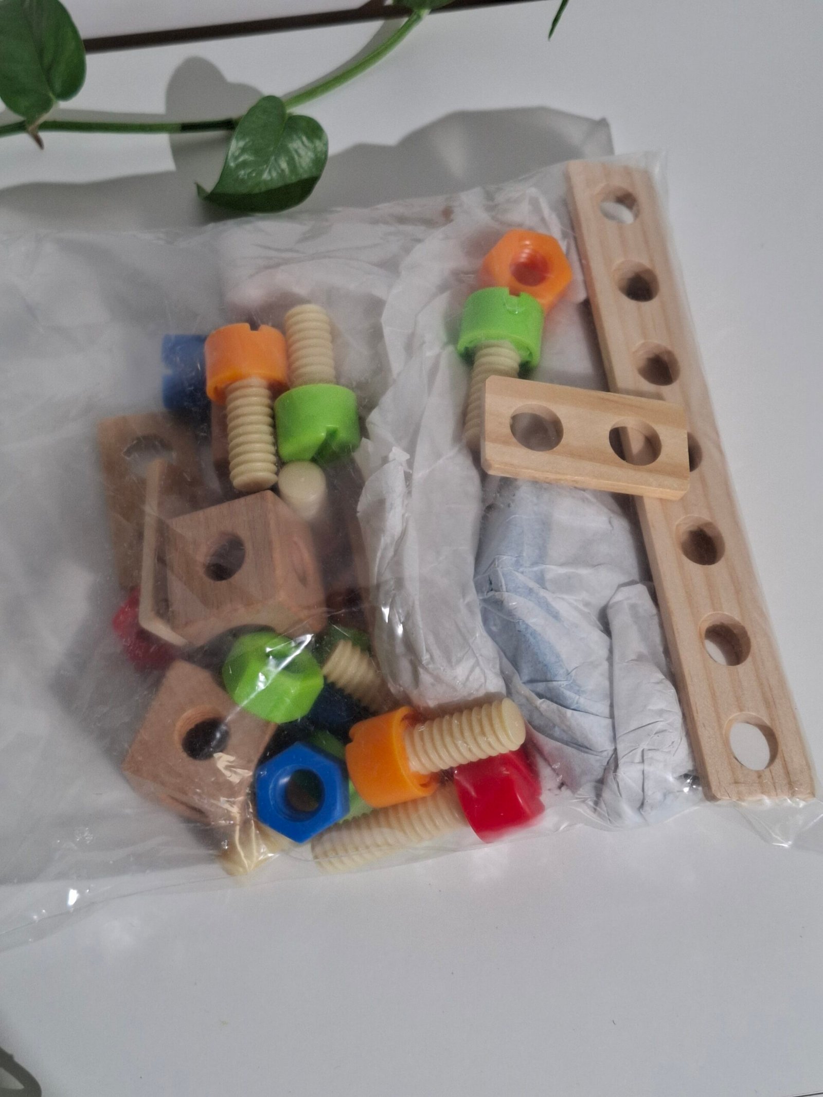 Medinės dirbtuvėlės lavina smulkiąją motoriką, kruopštumą, rankų ir akių koordinaciją, o svarbiausia – skatina kantrybę ir susikaupimą per žaidimą. Mediniai elementai yra saugūs ir dažyti sveikatai nekenksmingais dažais. Šis žaislas ne tik įdomus, bet ir tvirtas – pagamintas iš natūralios, ilgaamžės medienos.