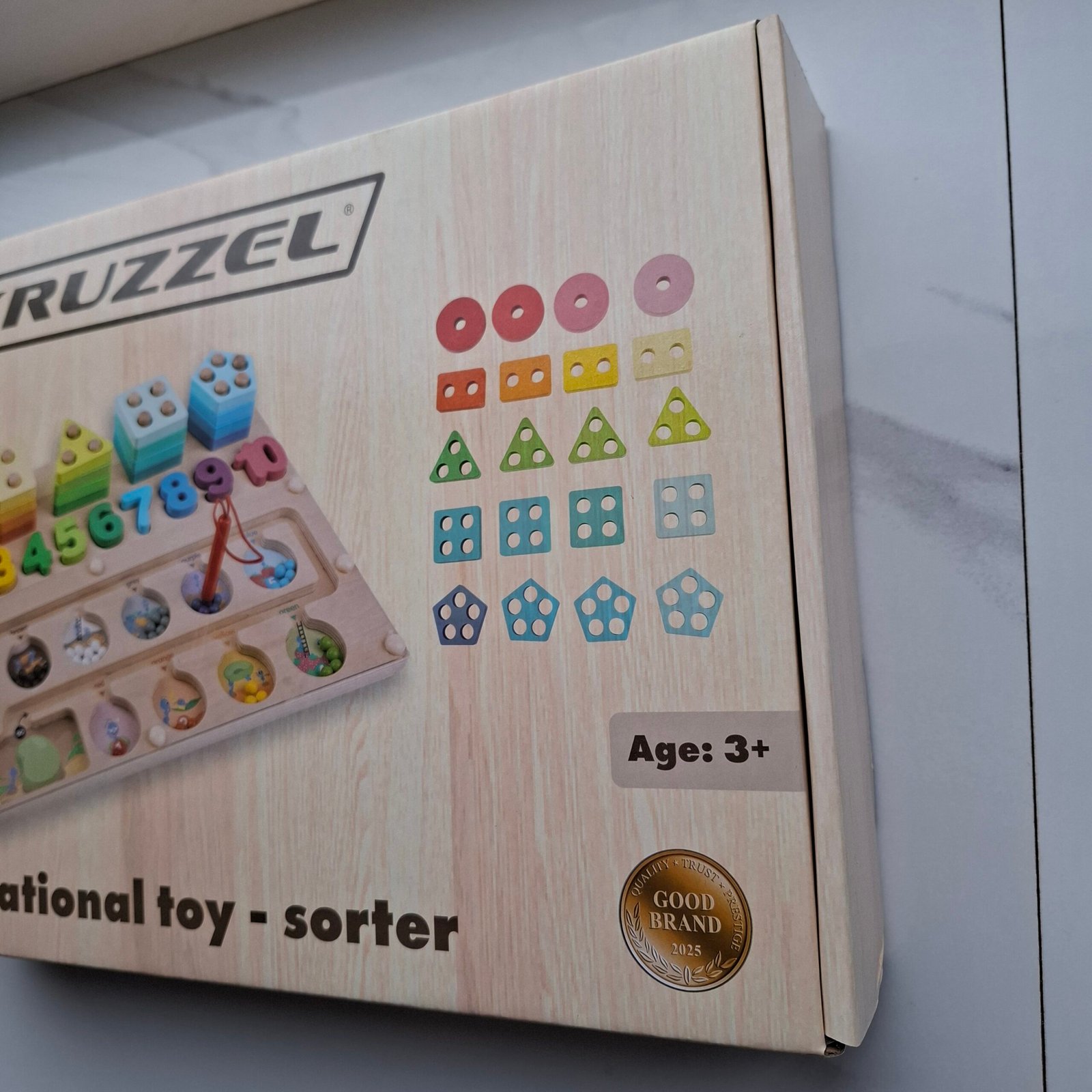 3in1 medinis Montessori rūšiuoklis – tai lavinantis žaislas vaikams nuo 3 metų, sujungiantis magnetinį labirintą, figūrų ir skaičių rūšiavimą vienoje interaktyvioje lentoje.