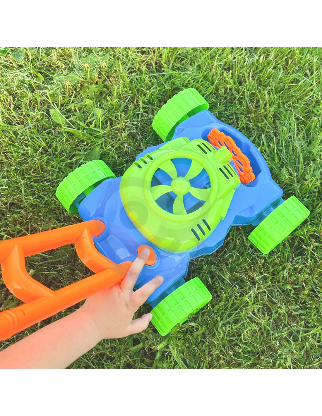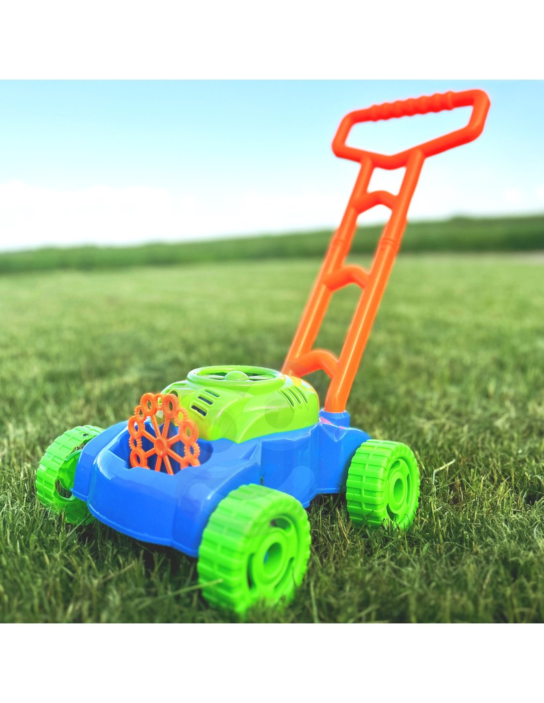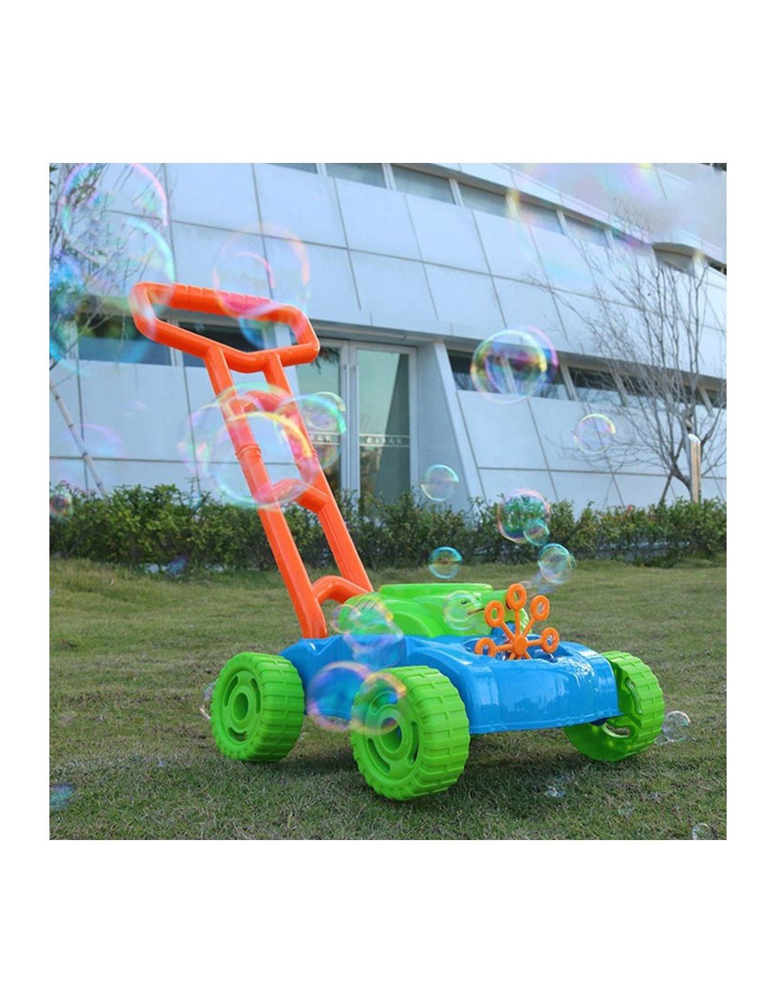 Muilo burbulų žoliapjovė su garsais – tai smagus ir įtraukiantis lauko žaislas, kuris sujungia judėjimą, vaizduotę ir burbulų magiją. Vaikai gali ne tik stumti žoliapjovę kaip tikrą, bet ir mėgautis nuolat sklindančiais spalvingais burbulais bei linksma muzika.