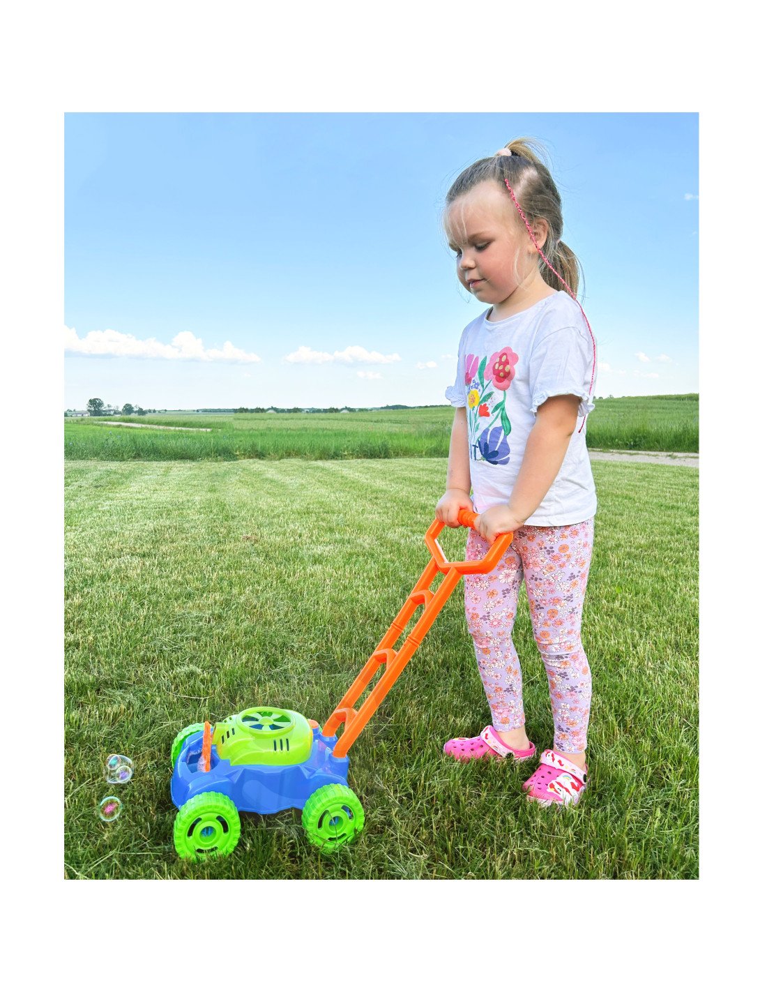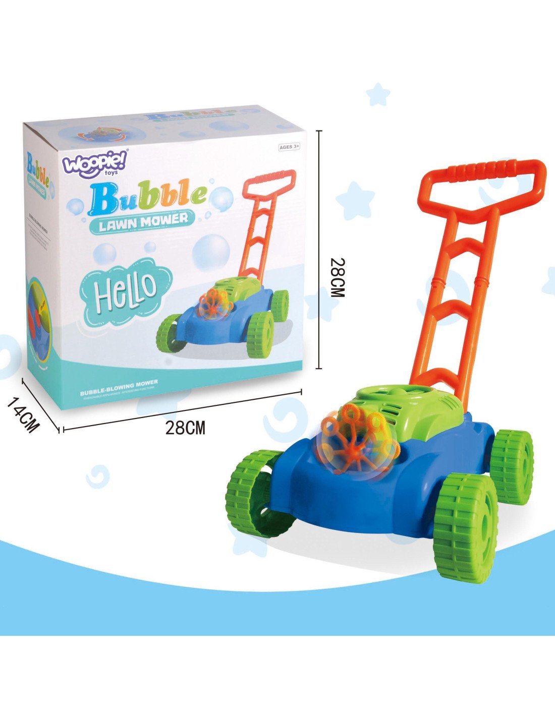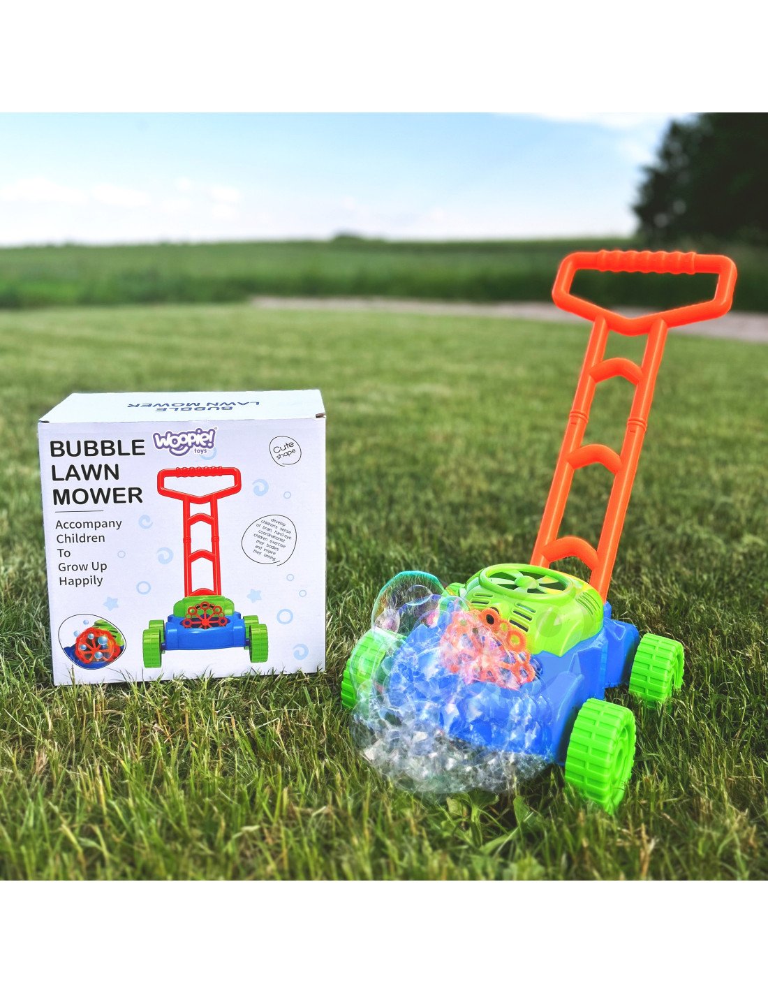 Muilo burbulų žoliapjovė su garsais – tai smagus ir įtraukiantis lauko žaislas, kuris sujungia judėjimą, vaizduotę ir burbulų magiją. Vaikai gali ne tik stumti žoliapjovę kaip tikrą, bet ir mėgautis nuolat sklindančiais spalvingais burbulais bei linksma muzika.