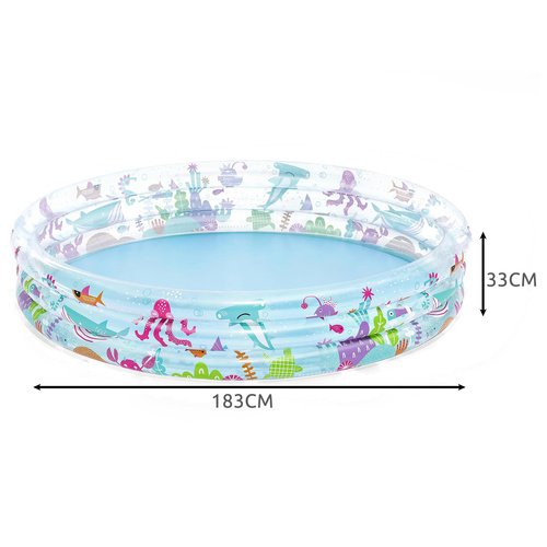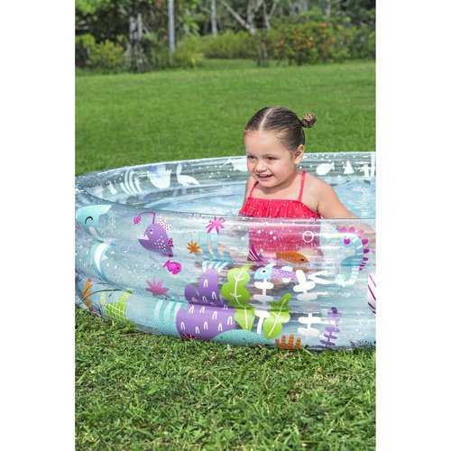 Pripučiamas baseinas BESTWAY – erdvus ir patvarus 3 žiedų baseinas vaikams nuo 3 metų, skirtas smagioms vasaros pramogoms.