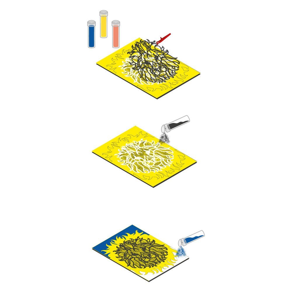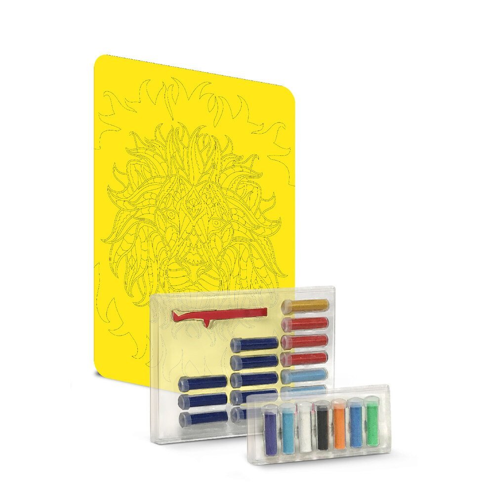 Pamažu pildydami paveikslą spalvotu smėliu sukursite ryškų liūto atvaizdą. Tokia veikla ne tik suteikia daug kūrybinio džiaugsmo, bet ir padeda lavinti kruopštumą, dėmesio koncentraciją bei spalvų pojūtį.