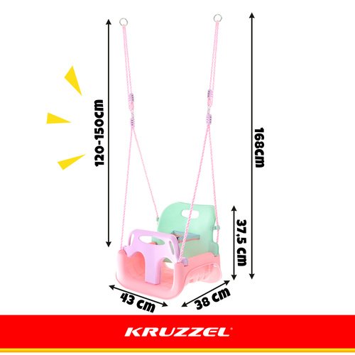Vaikiškos sūpynės KRUZZEL 3in1 – spalvingas ir praktiškas sprendimas, sukurtas augančiam vaikui. Šios sūpynės ne tik suteikia daug džiaugsmo, bet ir prisitaiko prie skirtingų vaiko amžiaus etapų – nuo pirmųjų saugių supimų iki savarankiško žaidimo.