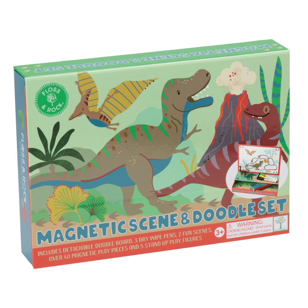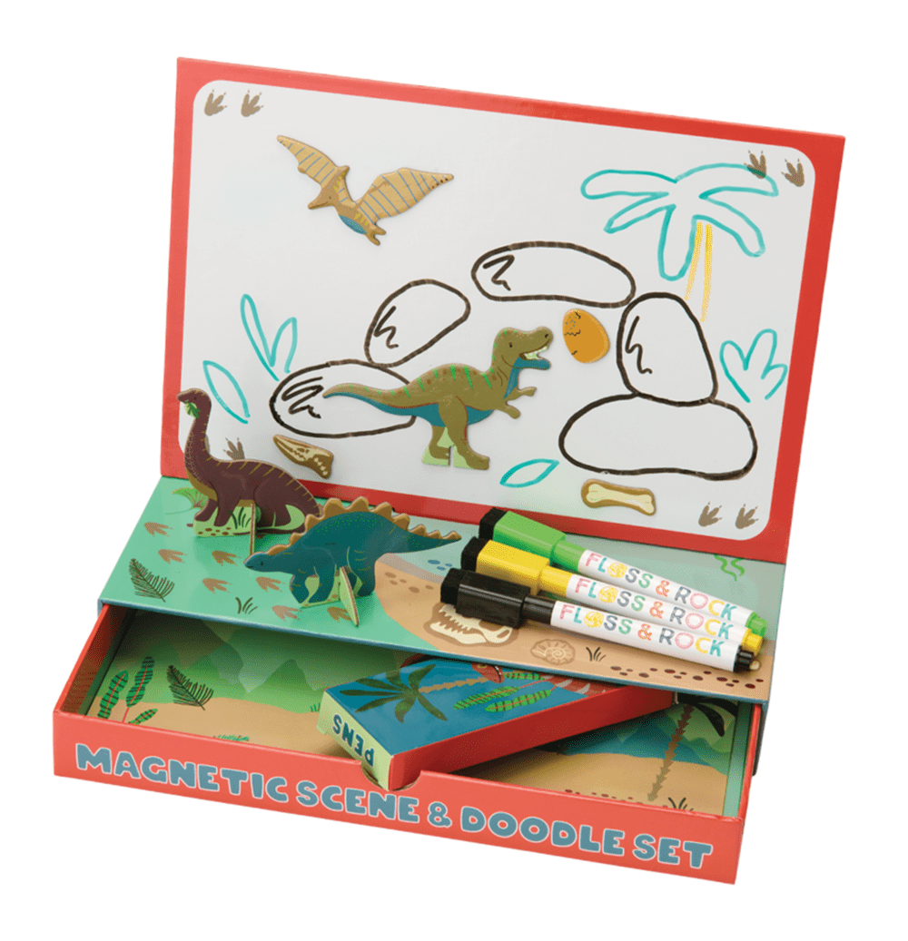 Magnetinis žaidimas ir piešimo rinkinys „Dinozaurai“ – įtraukiantis kūrybinis rinkinys mažiesiems tyrinėtojams. Dinozaurų pasaulis kviečia kurti savo istorijas, piešti ir žaisti su magnetinėmis detalėmis.